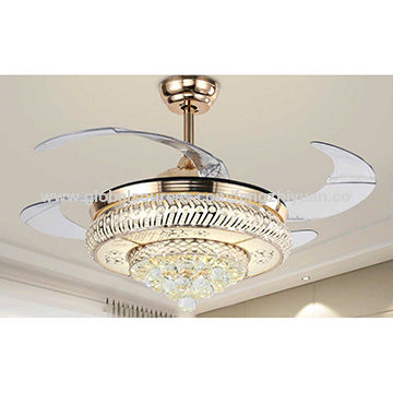 China 42 Ceiling Fan With Crystal Led Light 4 Retractile Blades