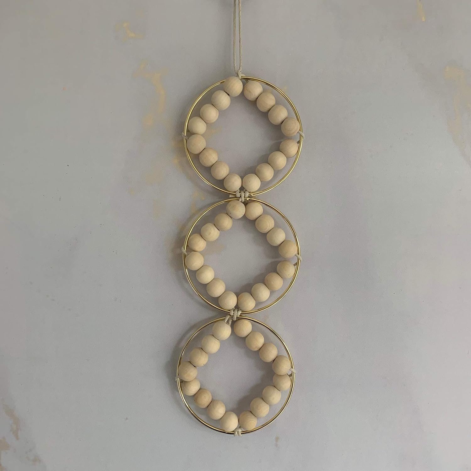 Gold Hoop Wall Hanging Wooden Beaded Decoration Home Design