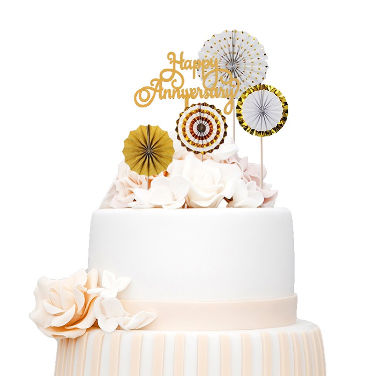 Gold Happy Anniversary Letter Acrylic Cake Topper Wedding