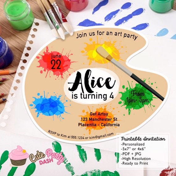 Art Party Birthday Party Diy Artist Palette Invitations Etsy