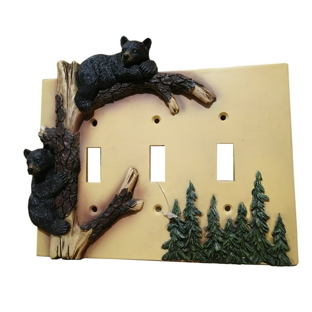 Black Bear Triple Switch Cover Home Decor Wildlife Bear Climbing