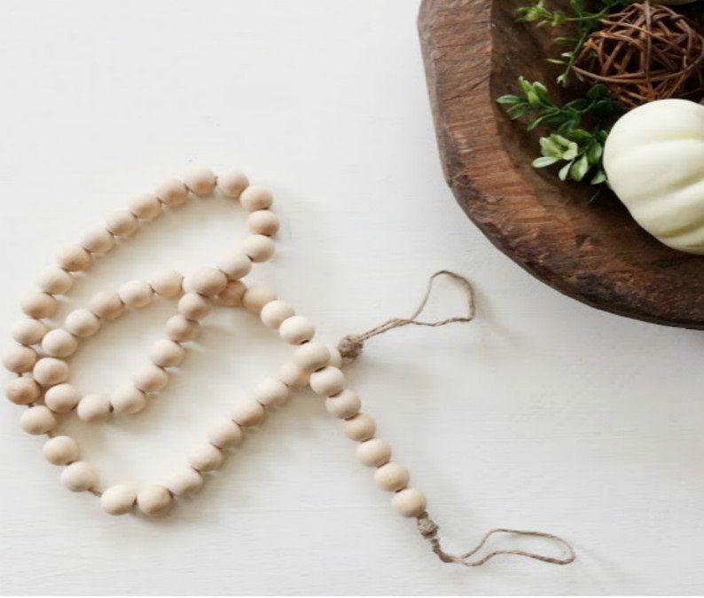 Wood Bead Garland Farmhouse Beads Coastal Beach Scandinavian Decor