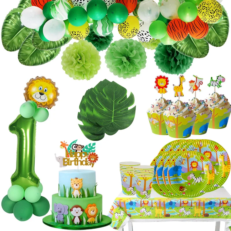 Fengrise Disposable Tableware Jungle Party Birthday Party Decor