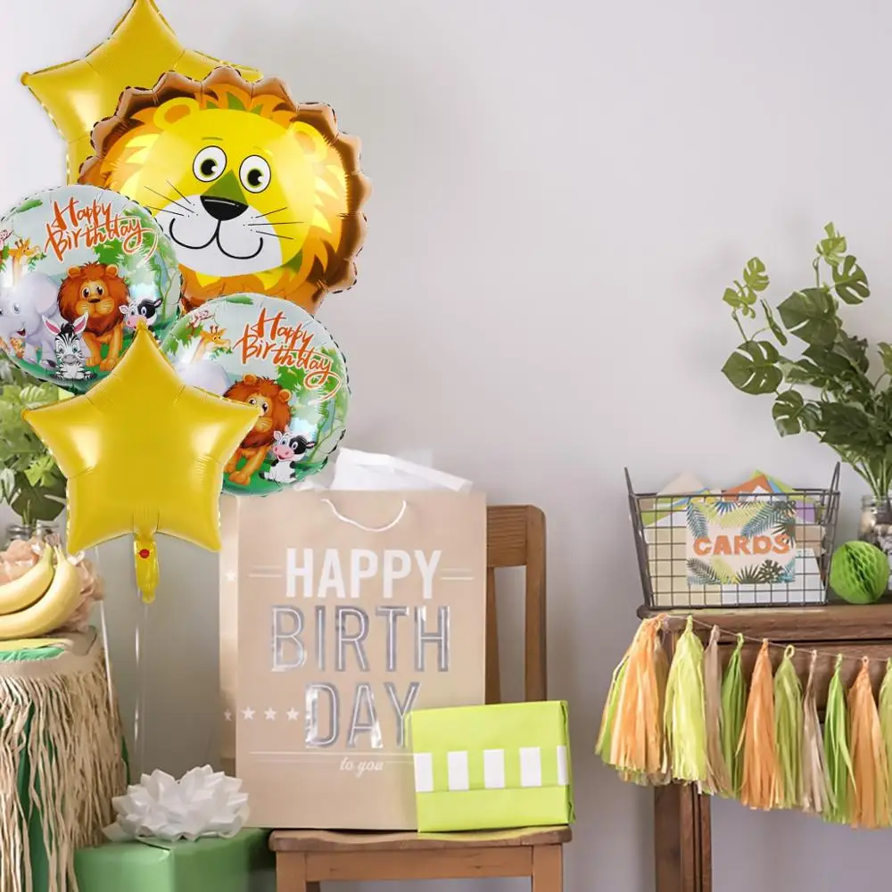 Huiran 6pcs Animal Foil Balloon Safari Jungle Theme Ballons Forest