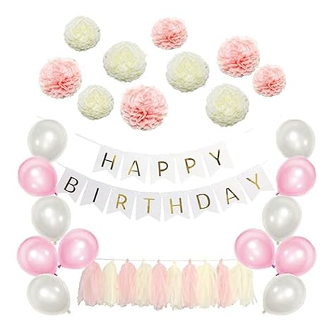 Party Decorations Set Pink White Grey Tissue Pompoms Paper