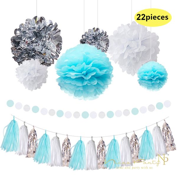 Nicro Blue Paper Flowers Fresh White Silver Tassel Garland Diy
