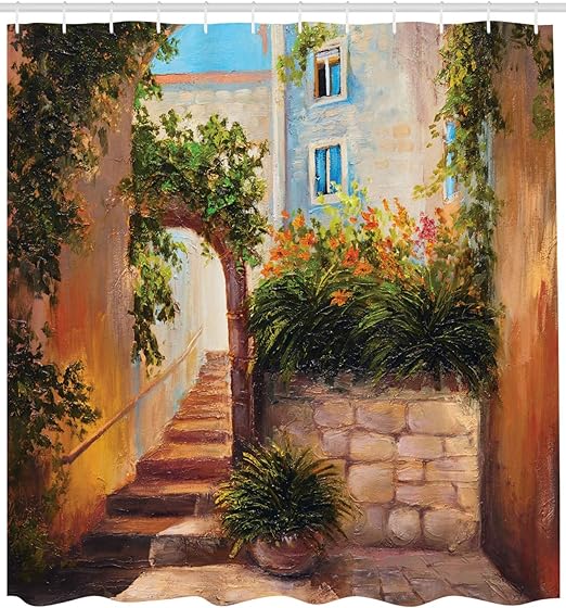 Amazon Com Lunarable Rustic Shower Curtain Stone Street Gate In