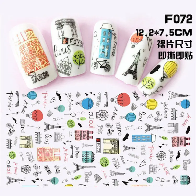 Nail Art Decals Paris Torre Eiffel Amor Labios Set 3d Diy Colorful
