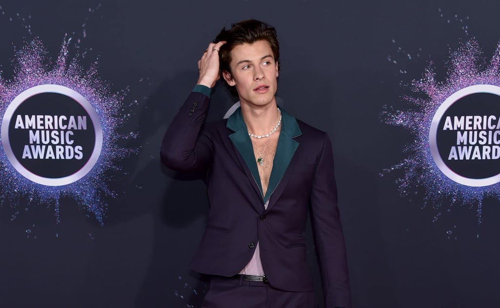 Shawn Mendes Wears An Indigio Suit And Necklaces To The Amas