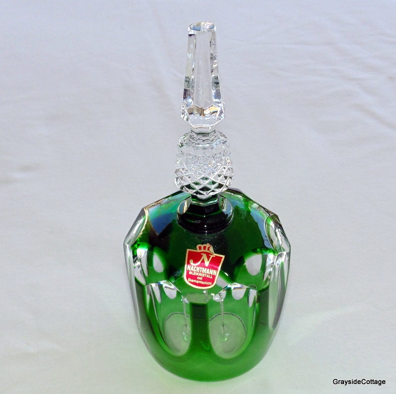 Nachtmann Cut To Clear Green Glass Bell Hand Cut German