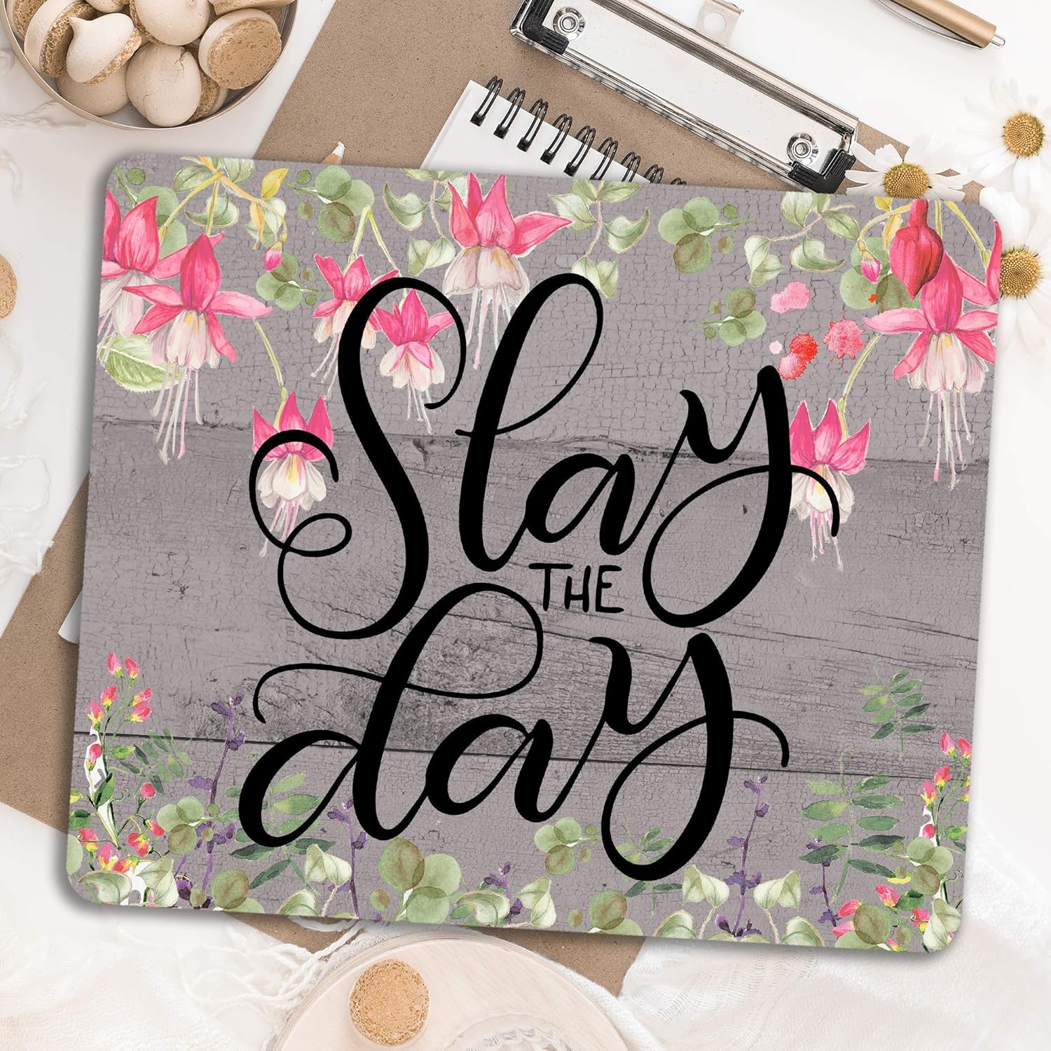Amazon Com Slay The Day Inspirational Quote Pink Rustic Desk