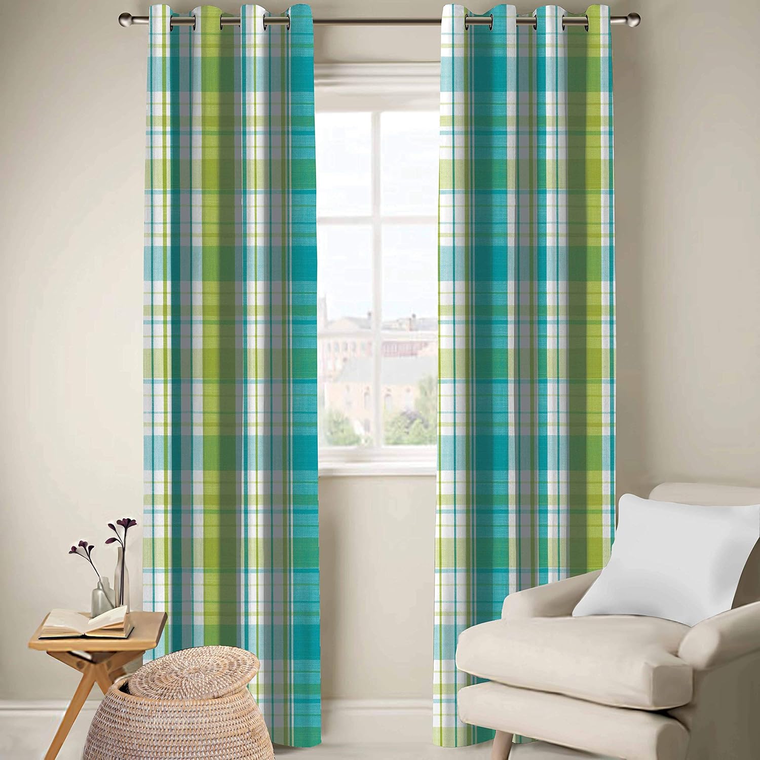 Buy Ddecor Live Beautiful Stripes And Checks Green 9 Ft Curtain