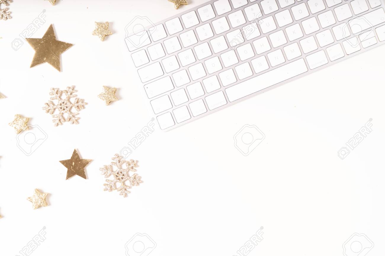 Christmas Home Office Desk With Keyboard And Christmas Gold