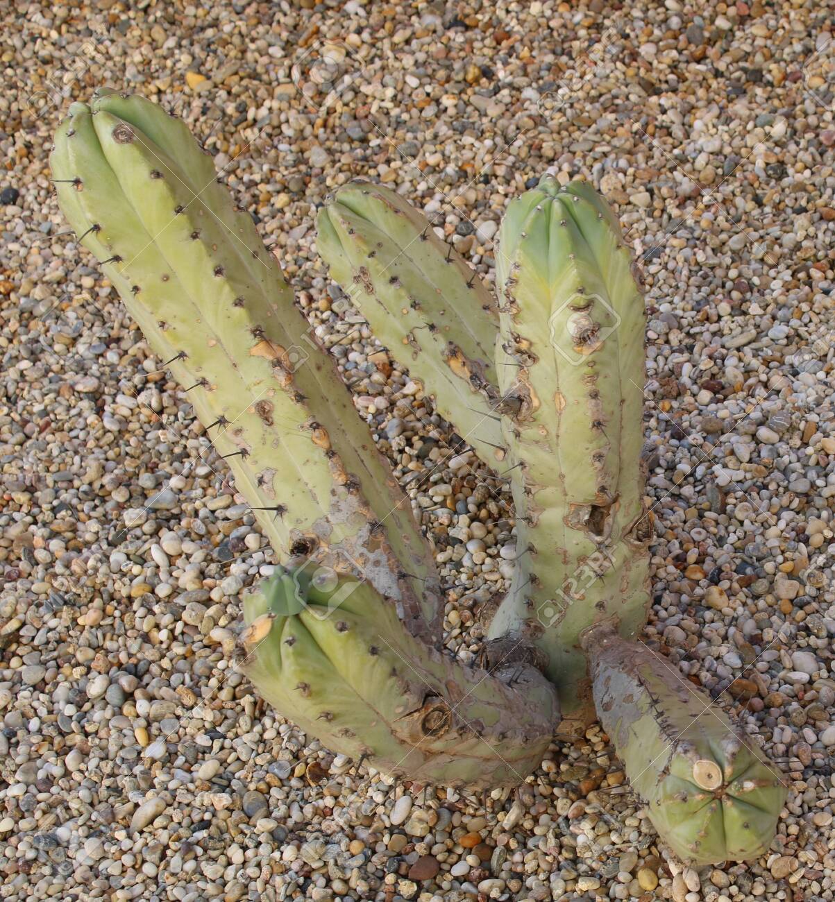Cactus Plant In Clay Pot Surrounded By Decorative Stones Stock