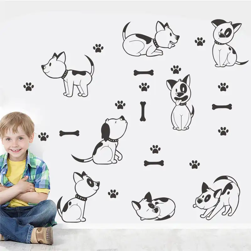 Cute Dog Paw Print Dog Bone Wall Sticker Pet Room Kids Room Paws