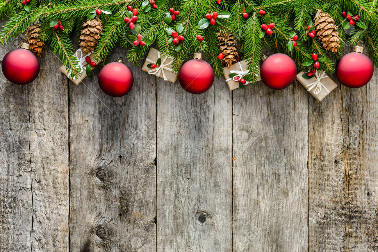 Garland With Fir Branches And Decorations Christmas Background