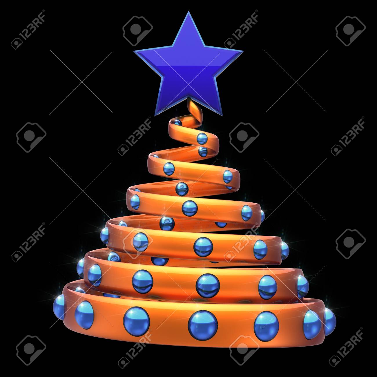 Xmas Christmas Tree Decoration Spiral Abstract Golden Blue