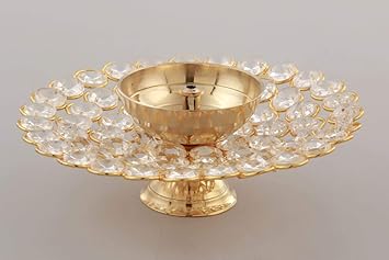 Buy Collectible India Crystal Akhand Diya Oil Puja Lamp Golden