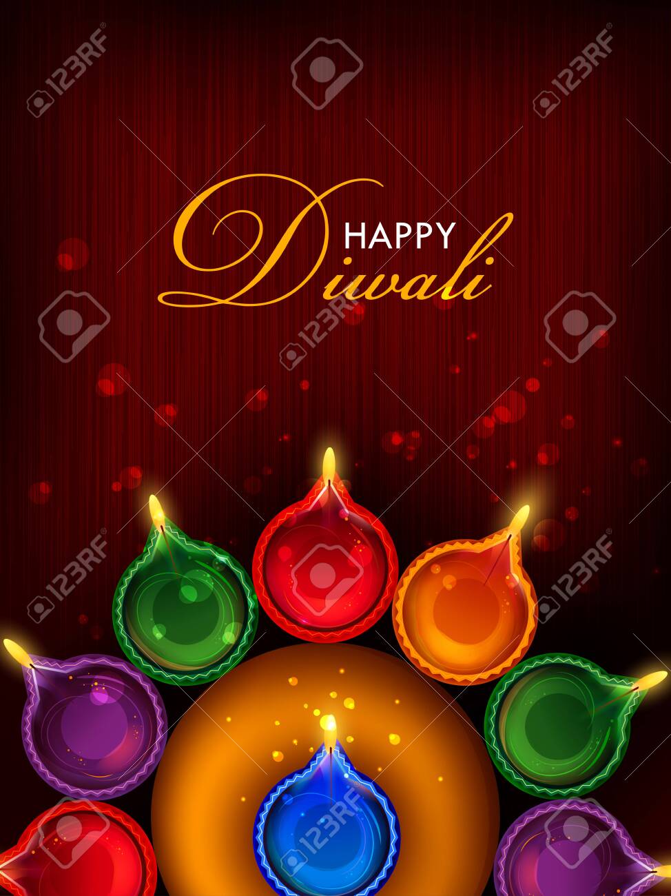 Decorated Diya For Happy Diwali Festival Holiday Celebration Of