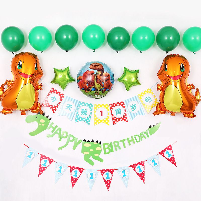 2020 Dinosaur Balloon Banner Flags Cute Happy Birthday Decoration