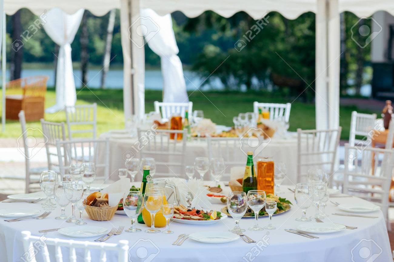 Catering Restaurant Event Service Set Table At Party Stock Photo
