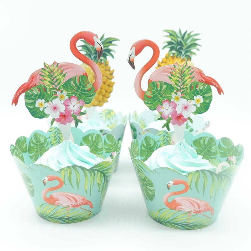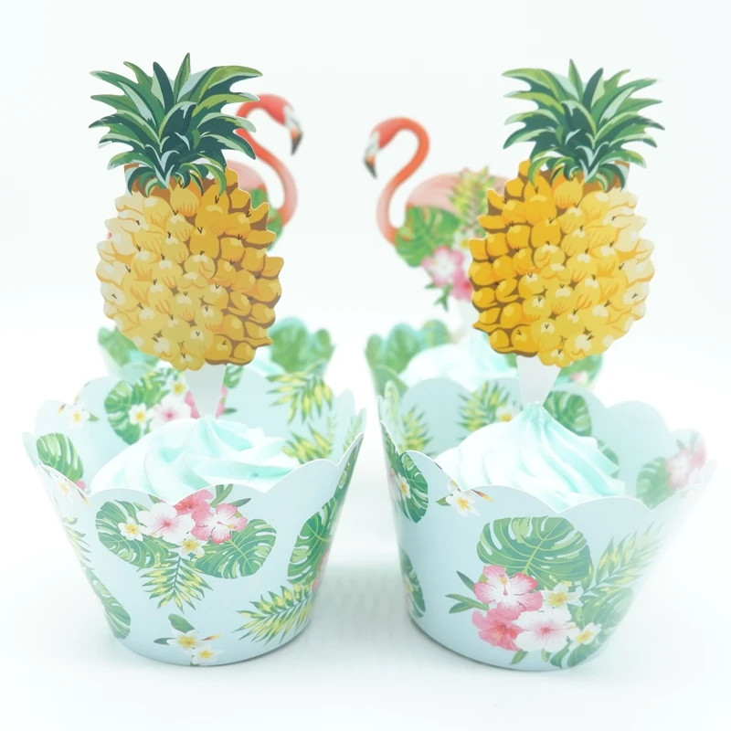 24pcs Tropical Rainforest Flamingo Pineapple Cupcake Birthday