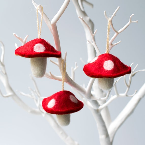 Felt Fairy Mushroom Set Three Autumnal Woodland Hanging Fairy Etsy