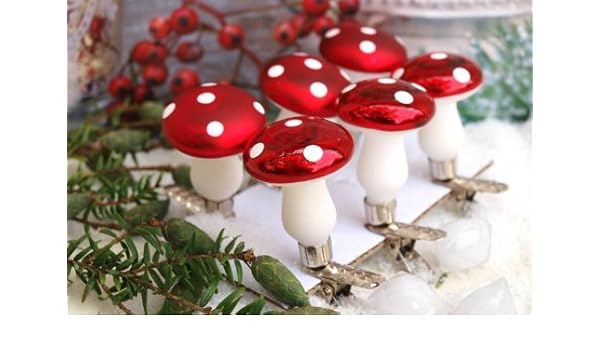 6 Fly Agaric Mushroom Christmas Tree Decoration Bauble Wreath Clip