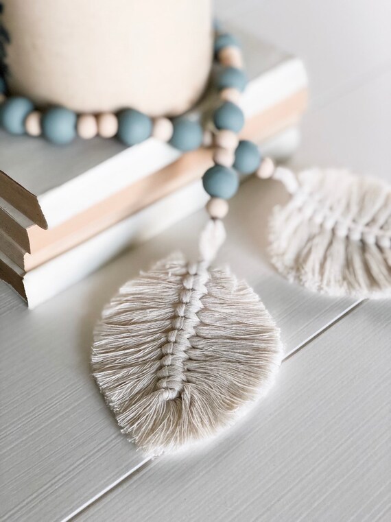 Macrame Leaf Feather Boho Wood Bead Garland Etsy