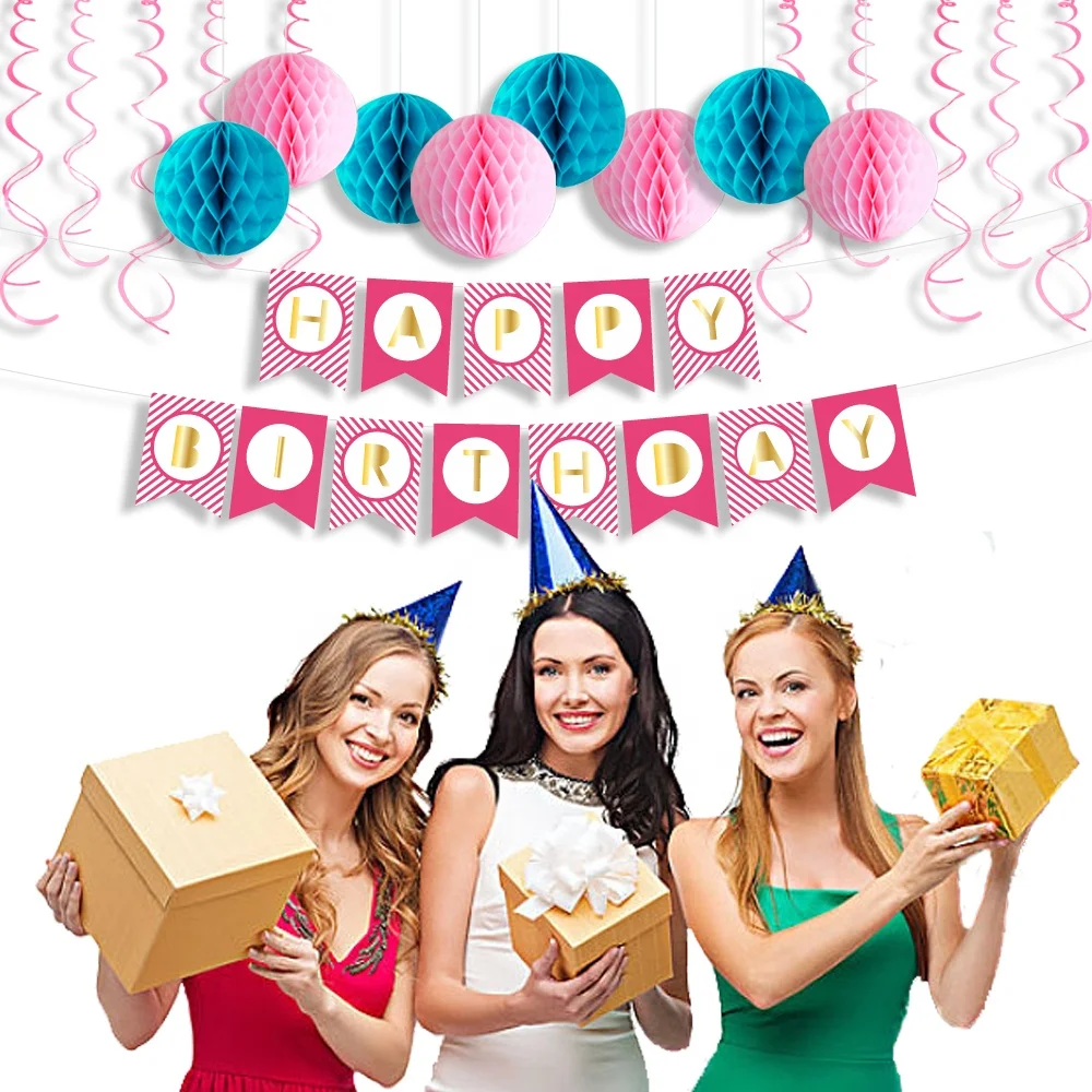 New Design Birthday Decorations Kit Pink Adult Elegant Birthday