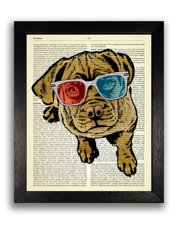 Dog Art Cool Dog In 3d Glasses Print On Dictionary Page Dog Etsy