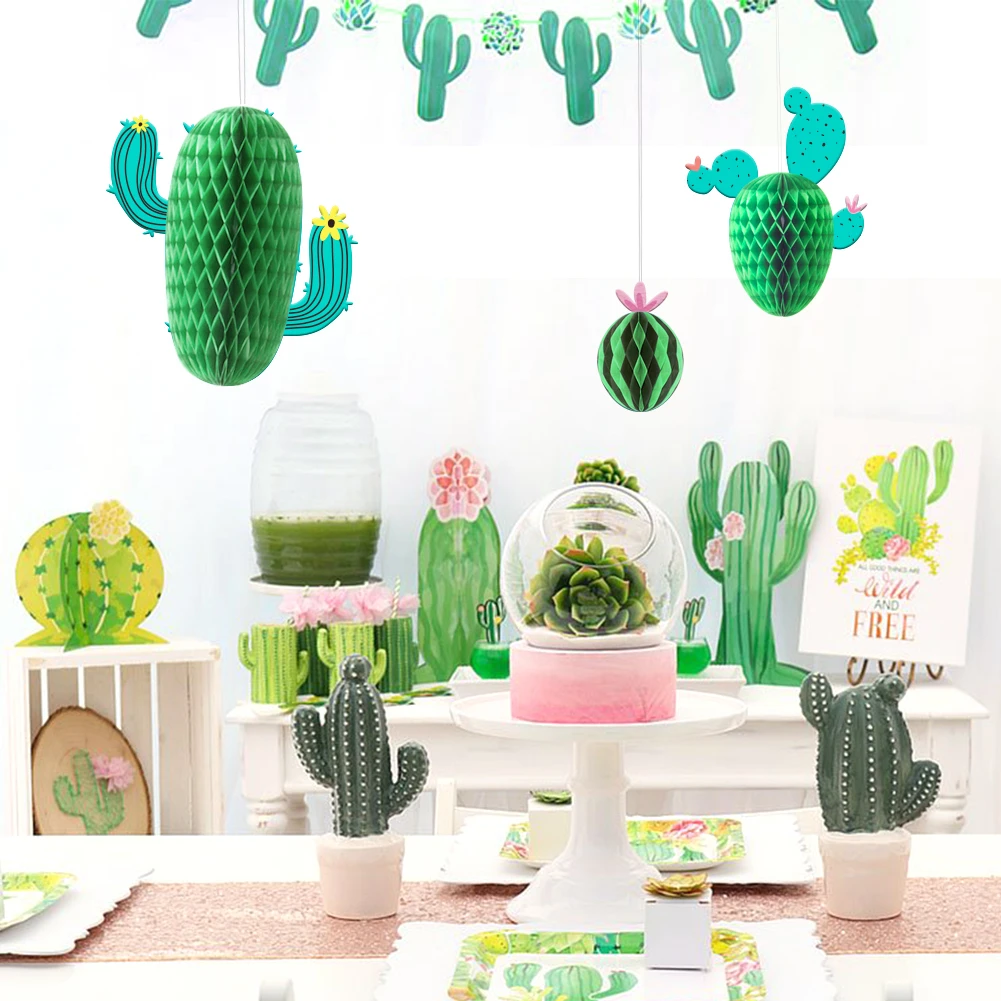 3pcs Set Honeycomb Cactus Hawaiian Decorations Trpcial Party