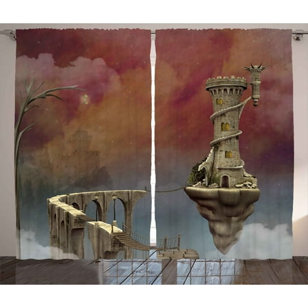 Fantasy Decor Curtains 2 Panels Set Fairy Tale Medieval Castle