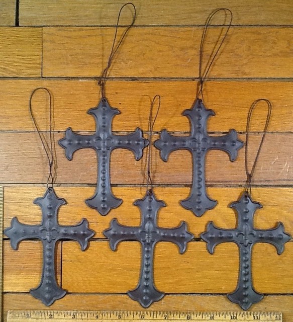 5 Fleur De Lis Crosses Rustic Brown Tin Metal Wall Cross Decor 5 1