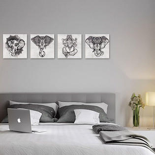 Sumgar Black And White Wall Art Bedroom Boho Decor Elephant