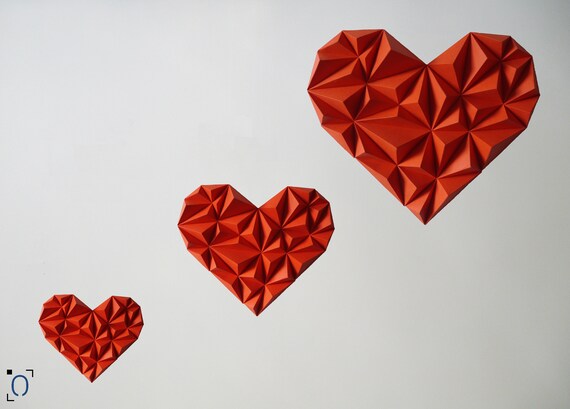 Kit Papercraft 3d Hearts S M L Size Wall Decoration Made In Etsy