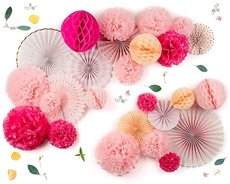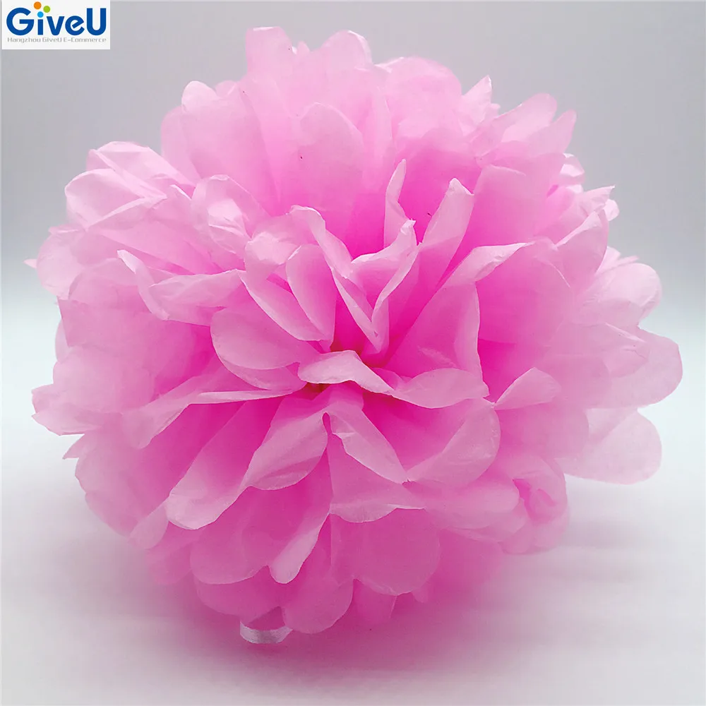 Pink Color D25cm 17gsm Tissue Paper Craft Decoration Pompom Flower
