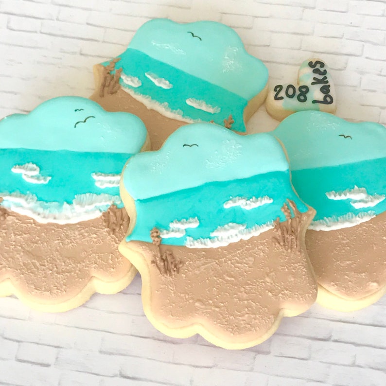 Beach Ocean Themed Wedding Bridal Shower Sugar Cookies