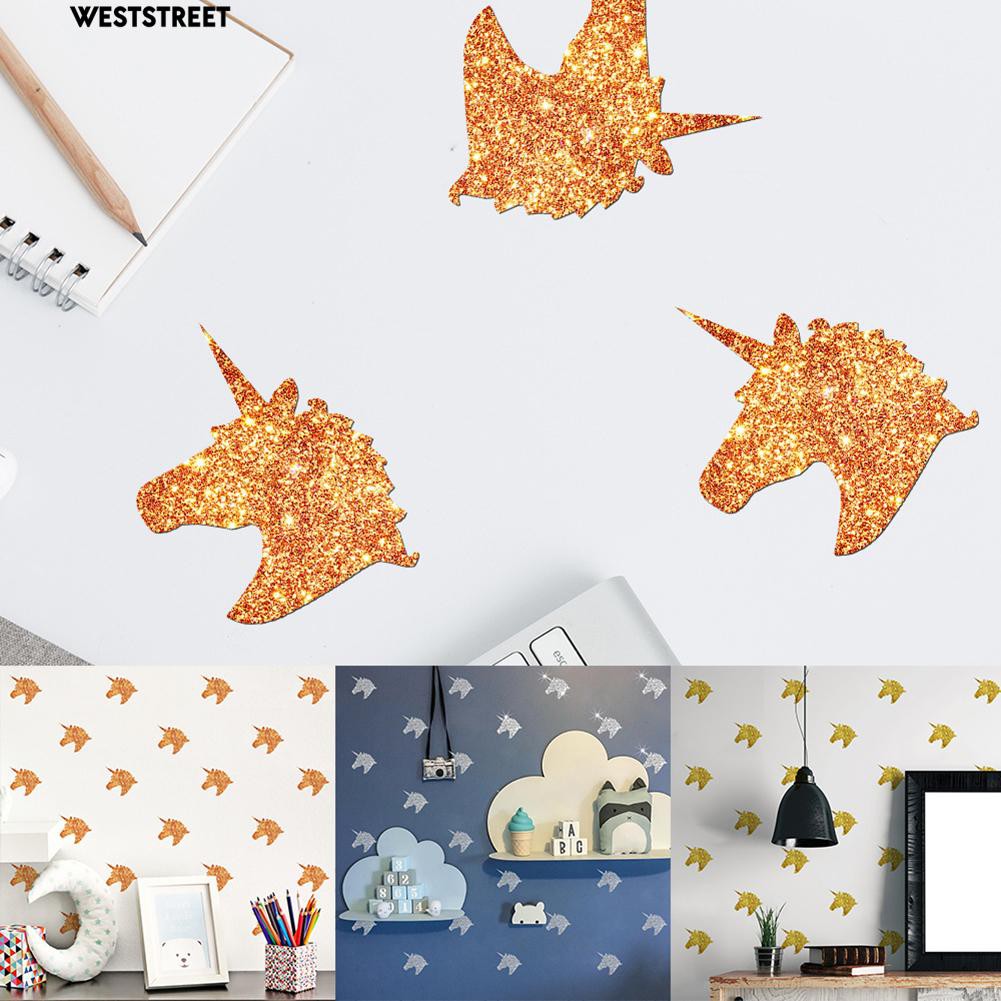 Cod 6 Sheets Glitter Unicorns Wall Stickers Kids Bedroom