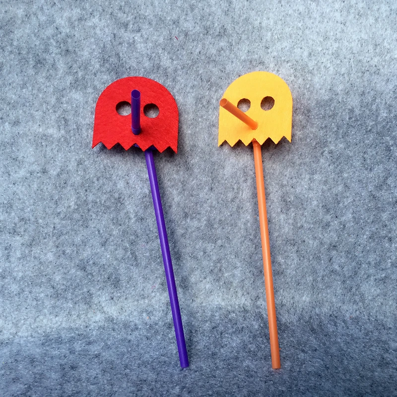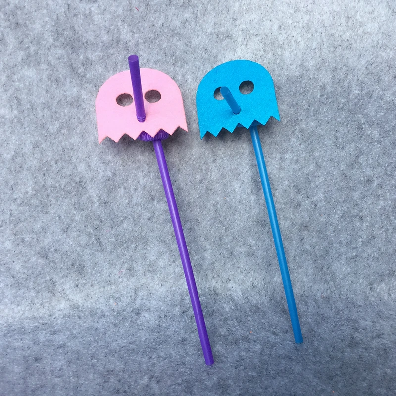 Freeshipping 24pcs Pac Man Straw Felt Flag Birthday Party