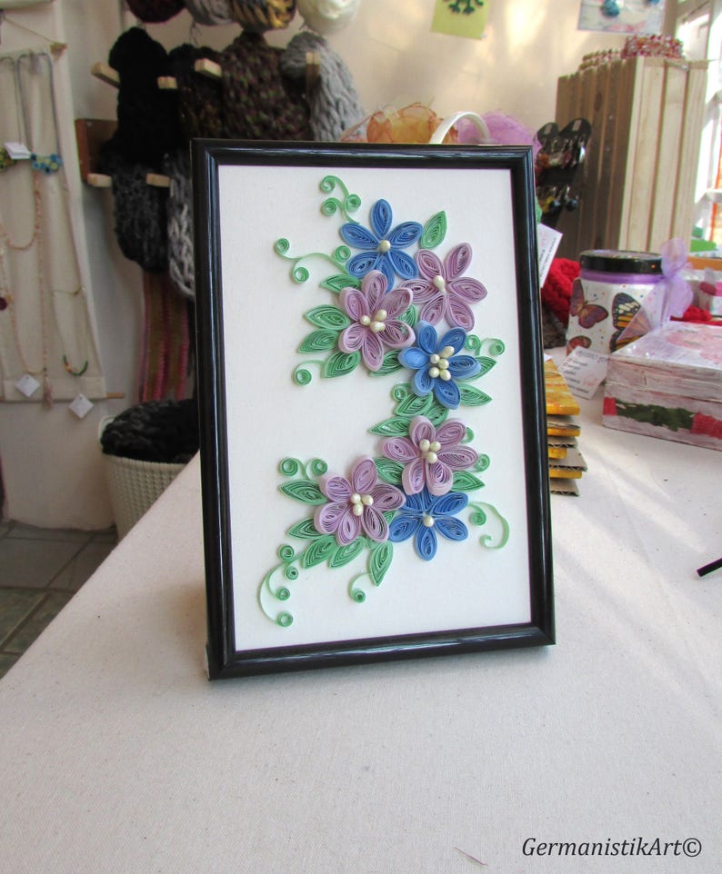Blue Purple Flower Wall Art Decor Home Decor Paper Quilling Etsy