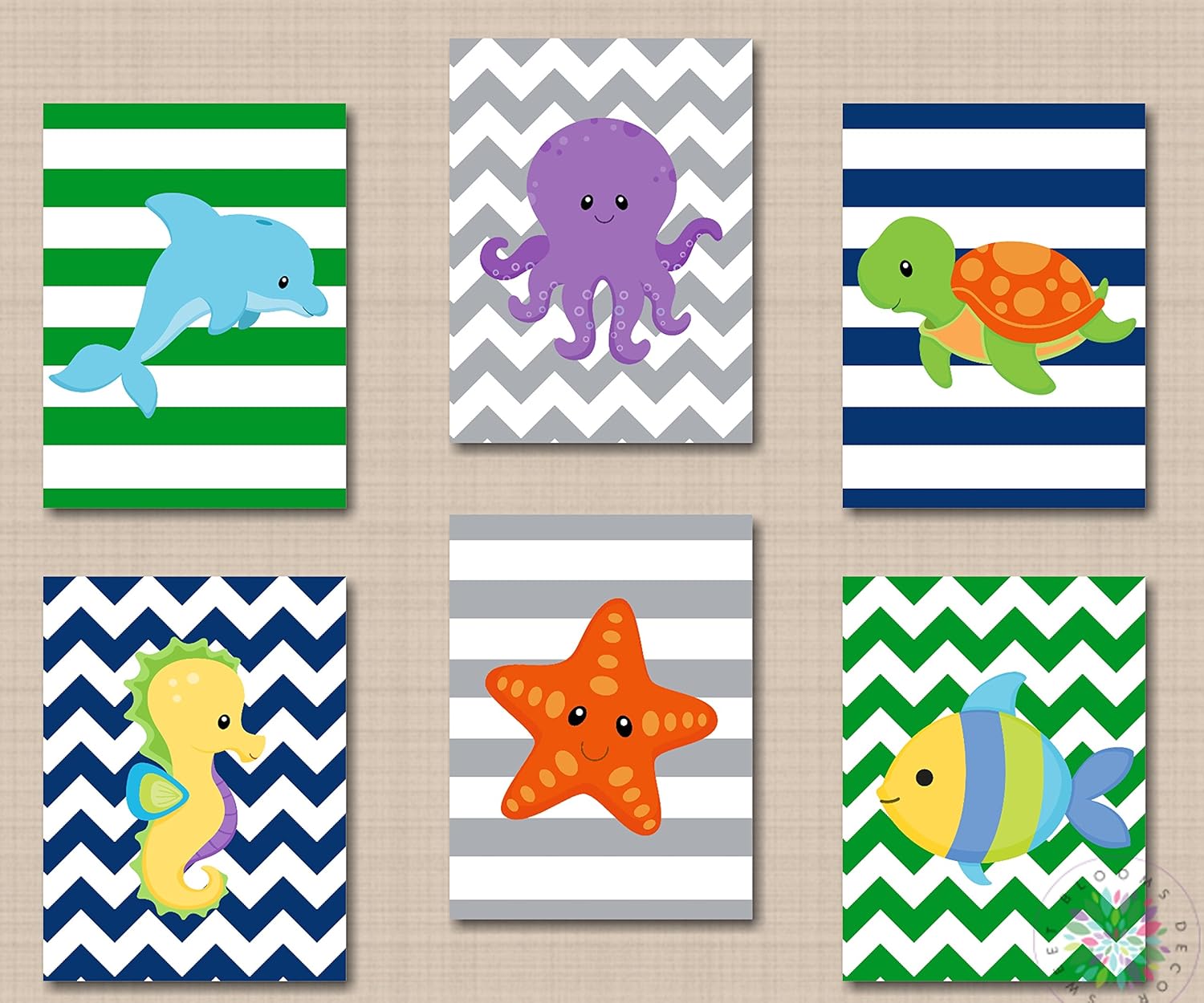 Amazon Com Sea Animals Nursery Wall Art Baby Room Decor Under The