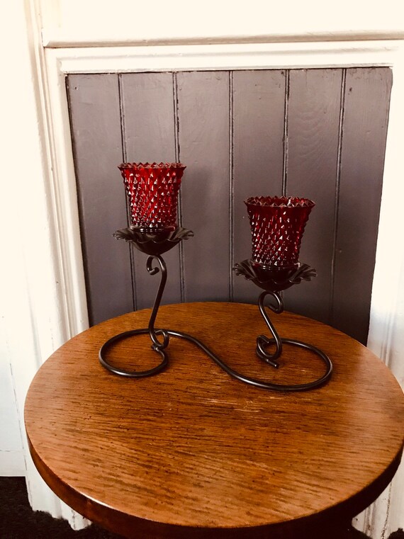 Red Glass Votives Upcycled Brass Flower Candle Holder Goth Etsy