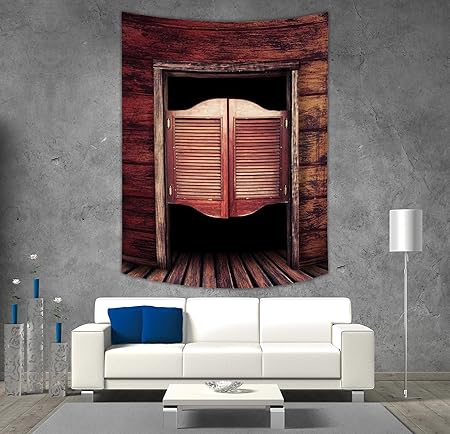 Iprint Polyester Tapestry Wall Hanging Western Old Rustic Wooden