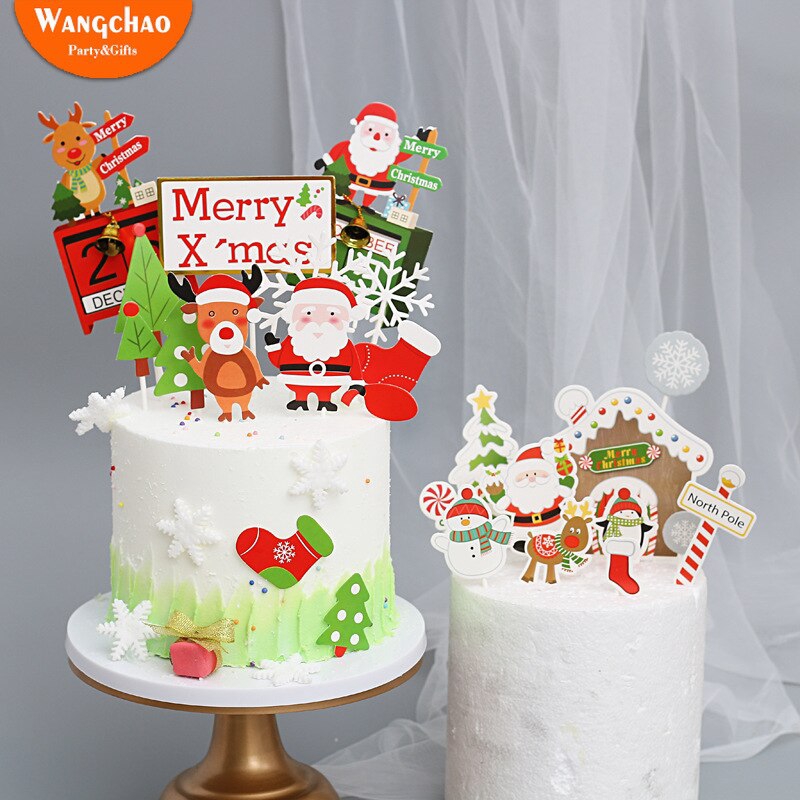 4 Styles Santa Tree Deer Snowflake Cake Decoration Merry Christmas