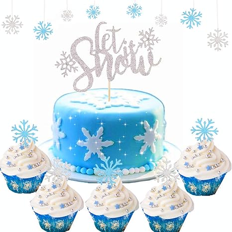 Set Of 21 Jevenis Gorgeous Let S It Snow Cake Topper Snowflake