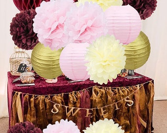 Burgundy Pink Glitter Gold Birthday Party Supplies Tissue Paper