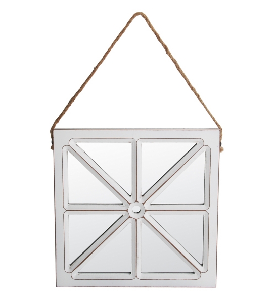 White Wheel Motif Wood Wall Mirror 12x12 In Kirklands