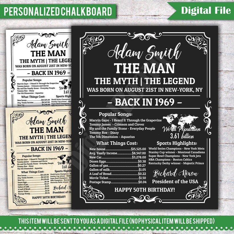 50th Birthday Sign Poster The Man The Myth The Legend Poster Etsy