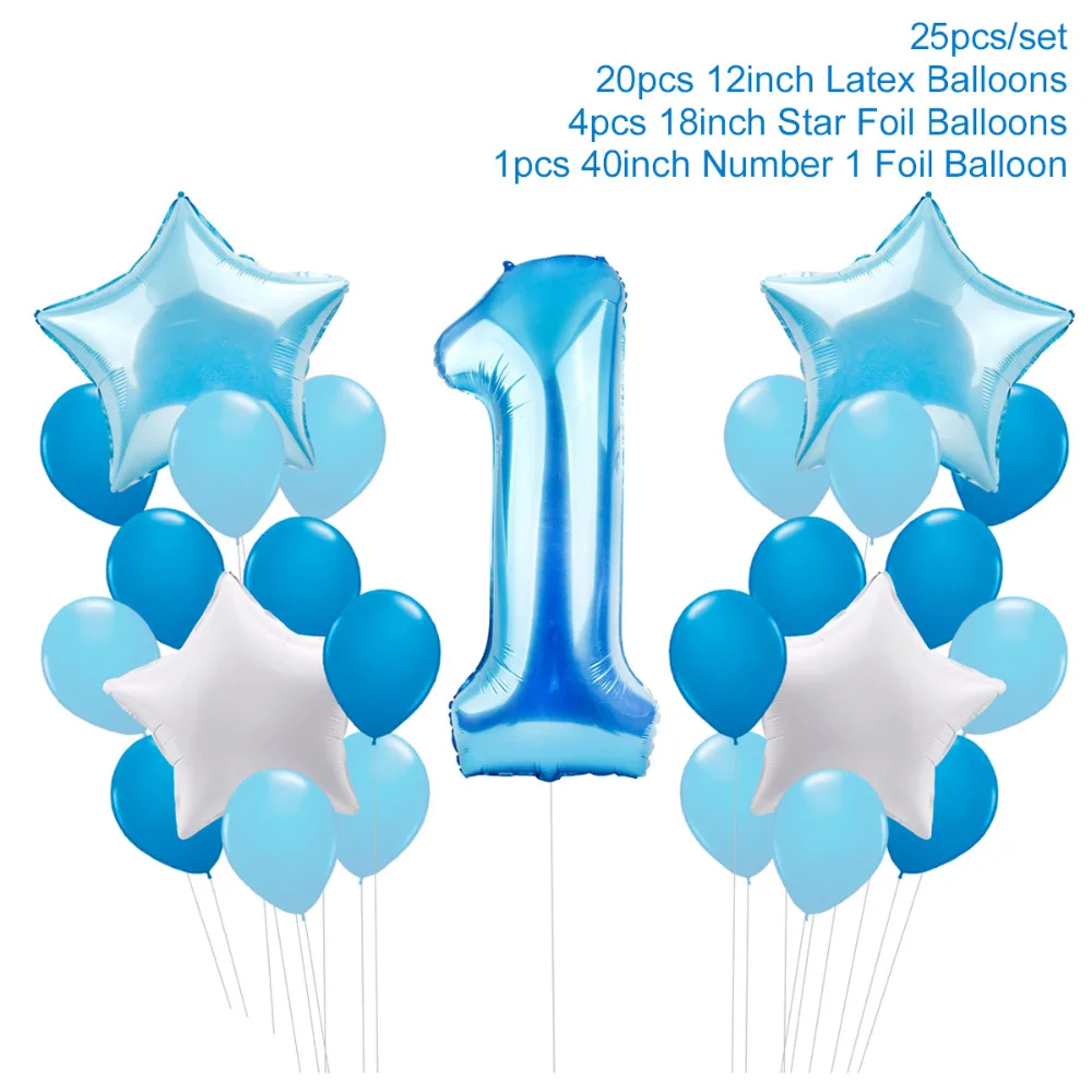 25pcs Foil Latex Balloons Set 1st Birthday Party Decorations Baby